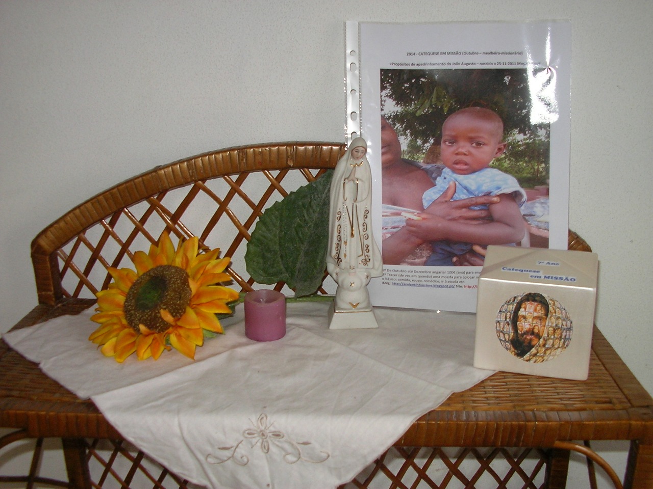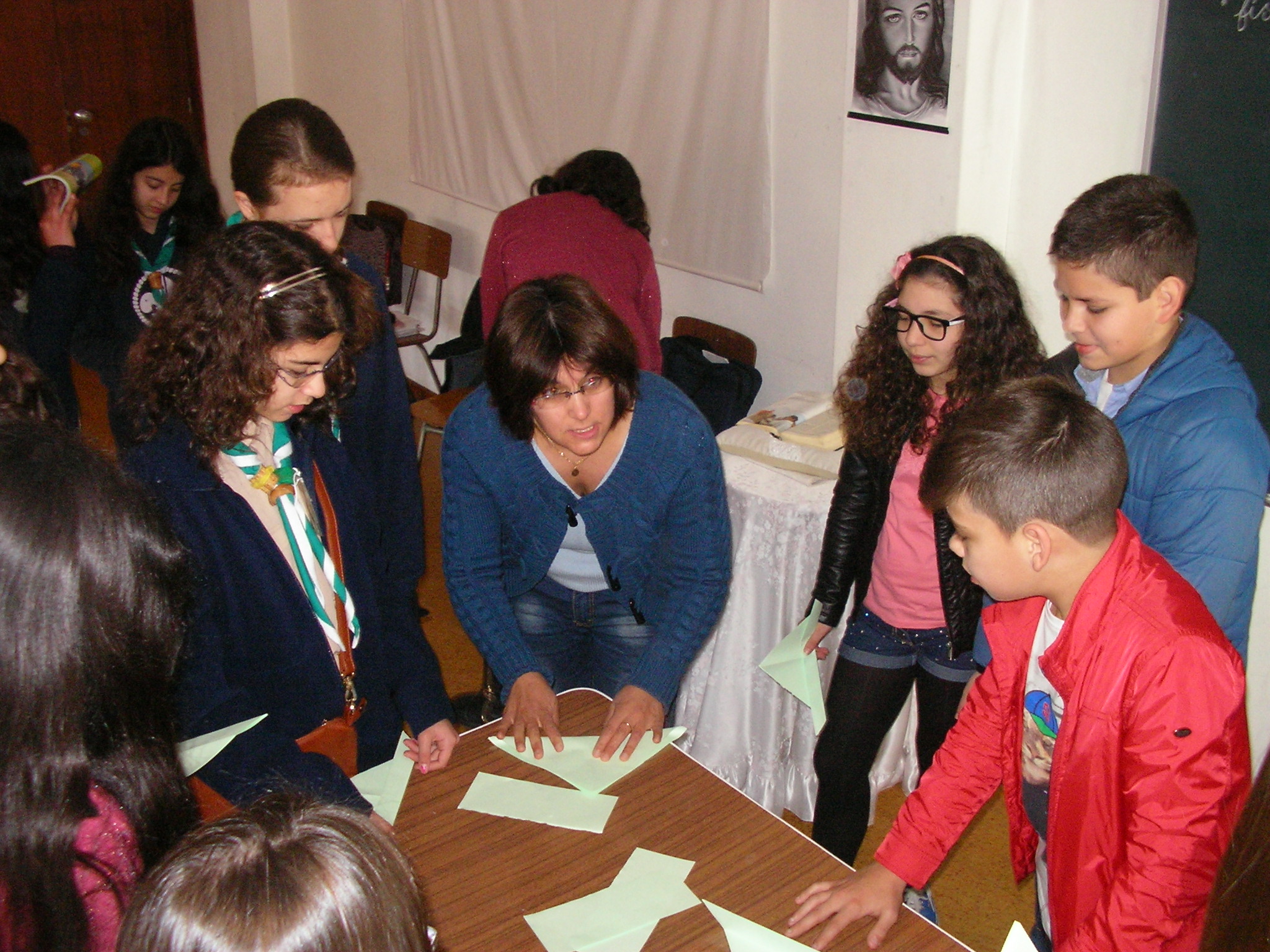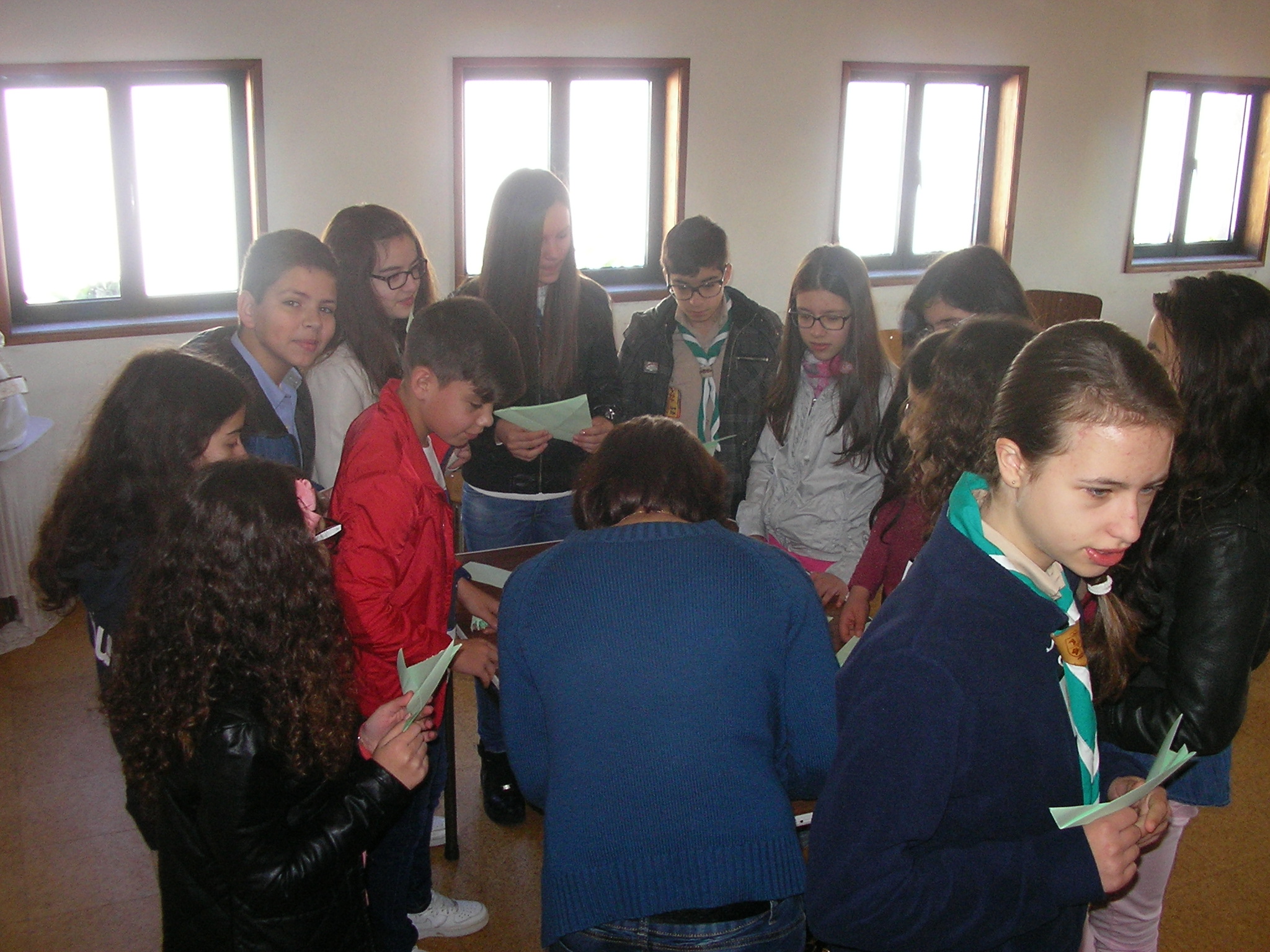 De seguida a catequista meteu num chapéu papéis com forma de barquinhos onde cada catequizando do 7ºano desejou algo para o grupo”Ás” de seguida continuamos com a catequese no nosso catecismo onde escrevemos algo sobre nos. No final abrimos os papéis e escrevemos para Maria onde metemos os papeis na talha.